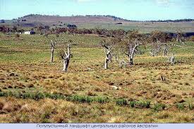 У Австралії зустрічаються більше 500 видів акації. Околиці материка (крім західних) зайняті вологими лісами - вічнозеленими тропічними на північному, евкаліптовими підтропічними на південному сході і південному заході. Зі збільшенням континентальності клімату вглиб материка вологі ліси змінюються тропічними і підтропічними сухими евкаліптовими лісами, рідколіссями і саванами. У сухих внутрішніх частинах Австралії розвинуті чагарникові і трав'янисті формації. Перевага чагарникових заростей – скребів – у напівпустелях і злакових у пустелях – специфічна особливість Австралії. Найбільше значення серед рослинних ресурсів Австралії мають природні пасовища в областях напівпустель і саван. Ліси товарного значення займають близько 2% площі материка. Велика частина їх складається з евкаліптів, що дають тверду деревину, яка не піддається гниттю, цінні олії і камедь.